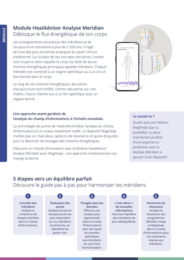 Bienvenue au niveau de bien-être supérieur avec le module d'Analyse des Méridiens – Ton sésame pour retrouver l’harmonie absolue.