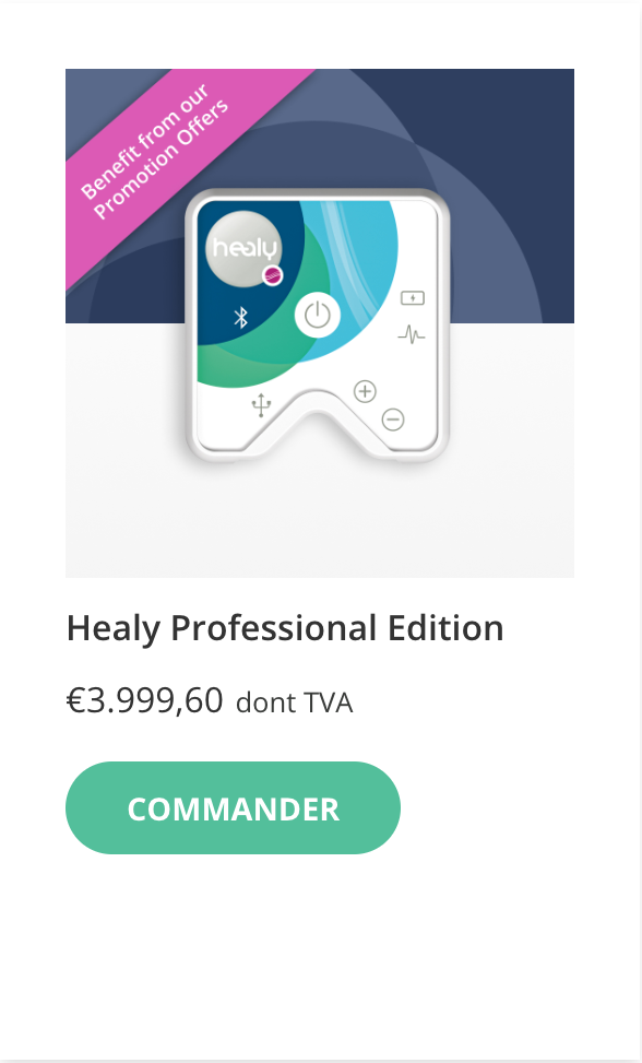 Healy est un dispositif médical certifié de classe IIa pour le traitement de la douleur chronique et des douleurs liées à la fibromyalgie, aux troubles musculo-squelettiques et à la migraine, ainsi que pour le traitement d’appoint des maladies mentales comme la dépression, l’anxiété et les troubles du sommeil associés. Les autres applications du Healy, ainsi que les programmes Individualized Microcurrent Frequency (IMF), ne sont pas reconnues par la médecine conventionnelle en raison du manque de preuves dans le sens où elle l’entend. De même, la science ne reconnaît pas l’existence du Champ d’informations, son analyse, son harmonisation et tout autre aspect important en raison de l’absence de preuves scientifiques. Le dispositif Healy n’a pas pour objectif de soigner, traiter, atténuer, diagnostiquer ou prévenir une maladie, mais il peut vous aider à favoriser votre vitalité et votre bien-être. Il sert exclusivement à l'harmonisation et au soutien du champ bioénergétique. Les informations sur cette page sont fournies à titre de référence et à des fins éducatives uniquement. L'utilisation de cet appareil ne doit pas être considéré comme un substitut à un avis médical professionnel, à un diagnostic ou à un traitement. Tout comme avec le Reiki, ce dispositif donne l’information au corps pour « s’auto-harmoniser » et trouver les ressources et les clés du bien-être en lui-même.